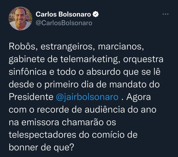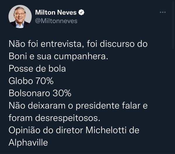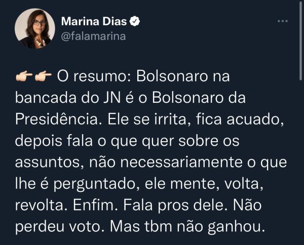 Após o debate do candidato à presidência Jair Bolsonaro (PL) no Jornal Nacional da Globo que aconteceu na última segunda-feira (23), diversas personalidades reagiram à sabatina com os jornalistas William Bonner e Renata Vasconcellos.