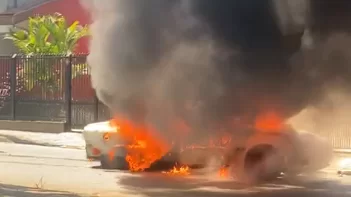 Um veículo pegou fogo na Praça Paris, no Jardim Augusta, nas proximidades do CenterVale Shopping, em São José dos Campos, na manhã deste domingo (6).
