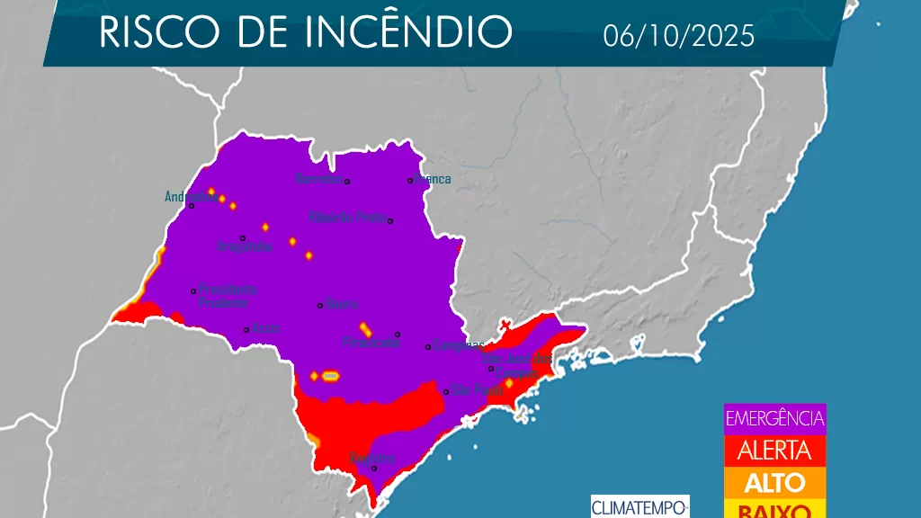 A Defesa Civil do Estado de São Paulo emitiu neste sábado (4) um alerta para o aumento do risco de incêndios em vegetação em todas as regiões paulistas, com destaque para o Vale do Paraíba, onde as condições devem se agravar nos próximos dias.
